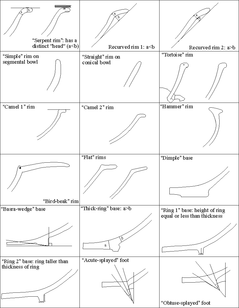 Figure 2.1. Catalogue of rim and base profiles, not to scale.