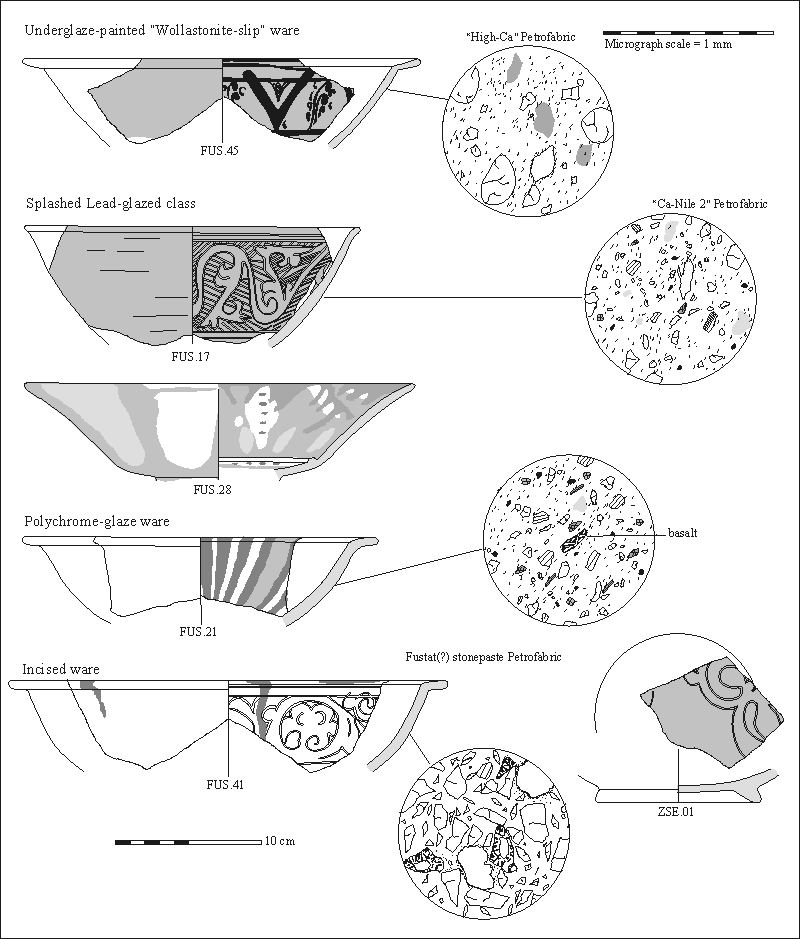 Figure 4.2. Selected pottery samples, with petrographic micrographs.