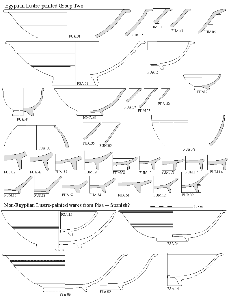 Figure 4.5. Forms of Egyptian Lustre-painted Group Two and related wares from Pisa (PSA nos. after Berti and Tongiorgi 1981).