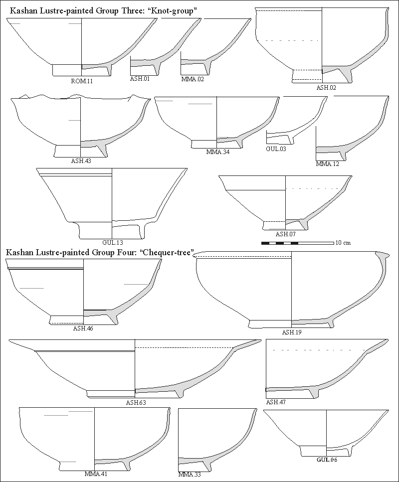 Figure 6.7. Form typology for Kashan Lustre-painted Groups Three and Four (GUL nos after Mota 1988).